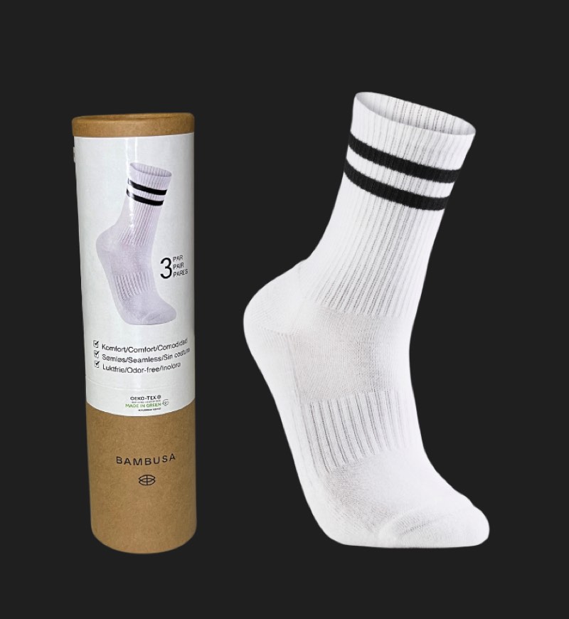 Bambusa tennisstrømper, hvid, 3 par