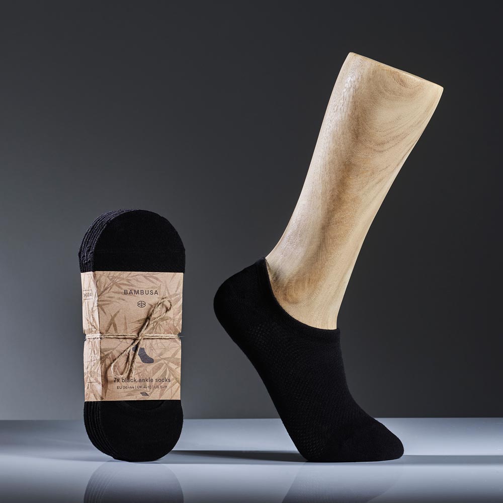 Bambusa ankelstømper, sort, 7 par