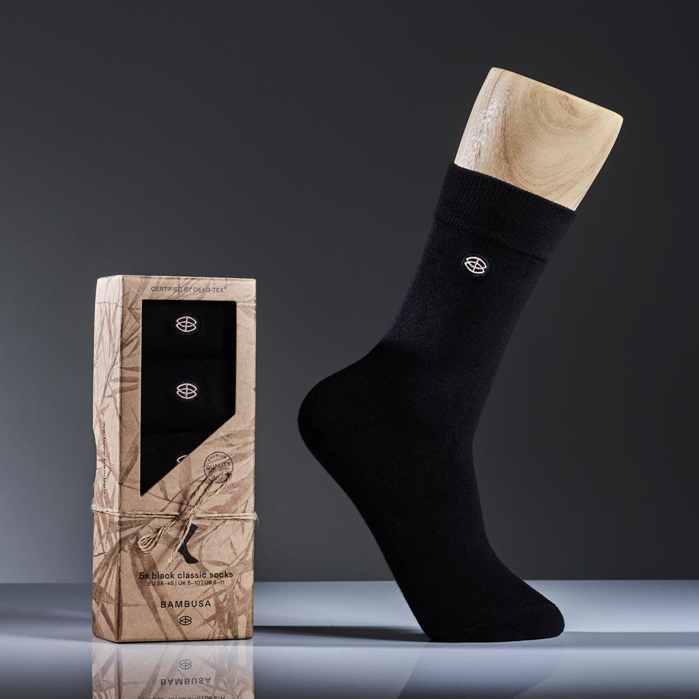 Bambusa klassiske strømper, sort, 5 par